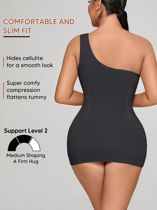 Sleeveless Shapewear Top One Shoulder Dress Slip Body Shaper Bodycon Mini Dresses