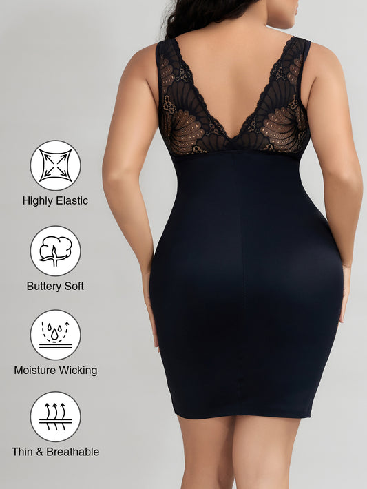 Lace Shapewear Dresses Deep V Neck Full Body Shaper Bodycon Mini Party Dresses